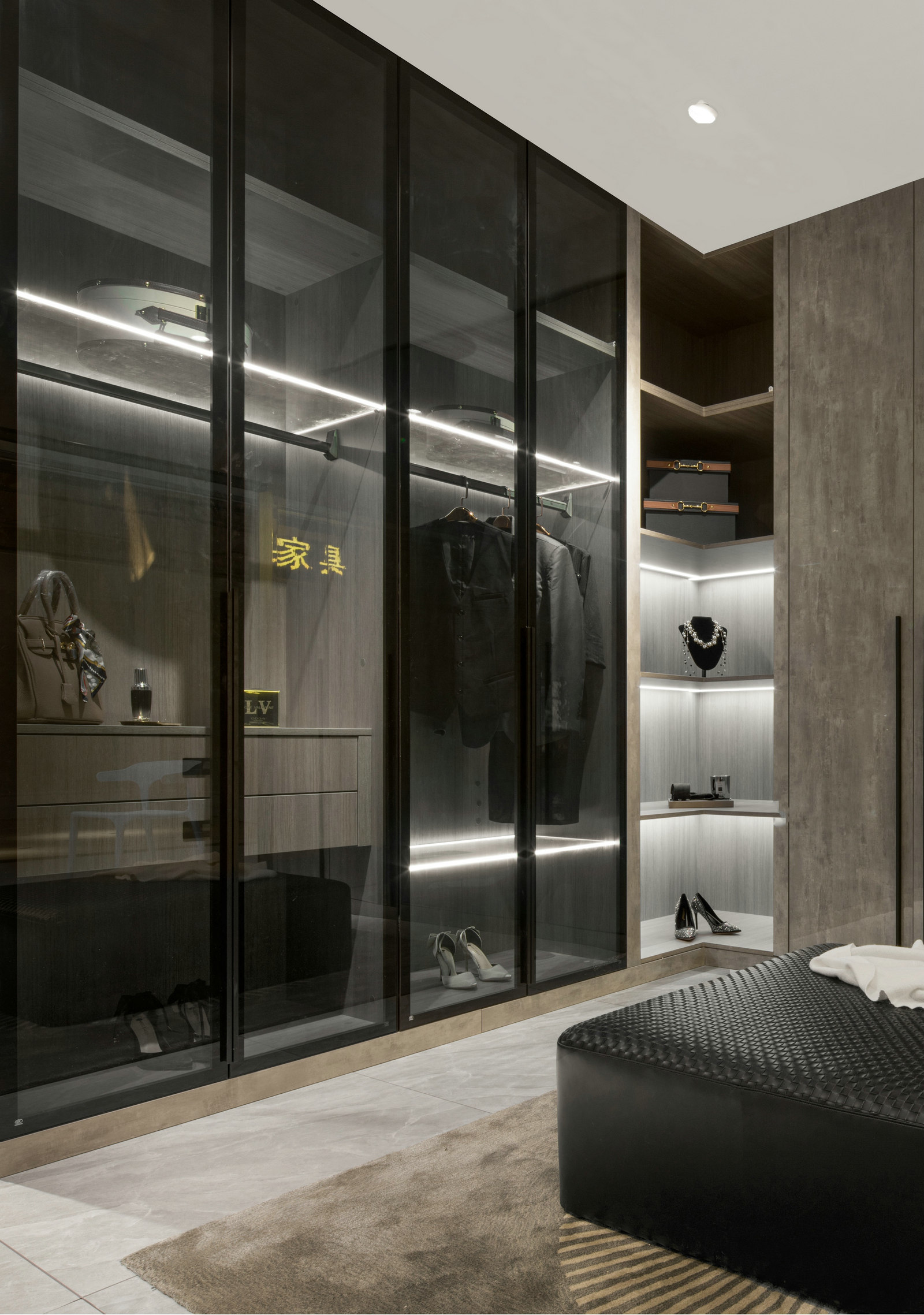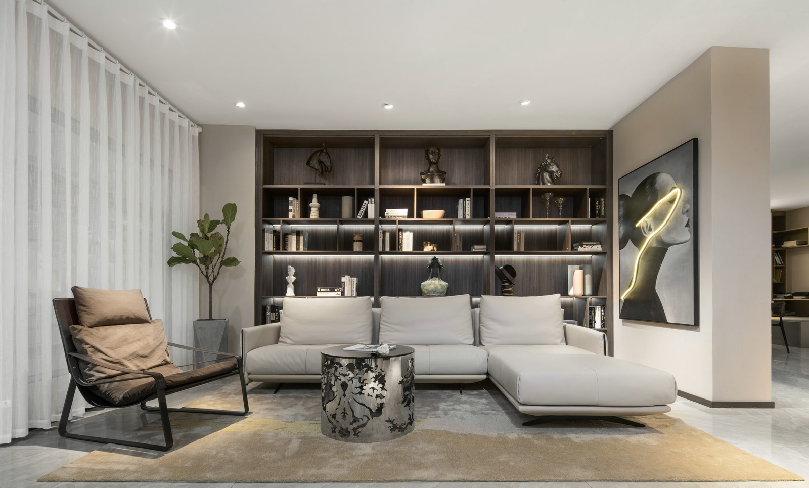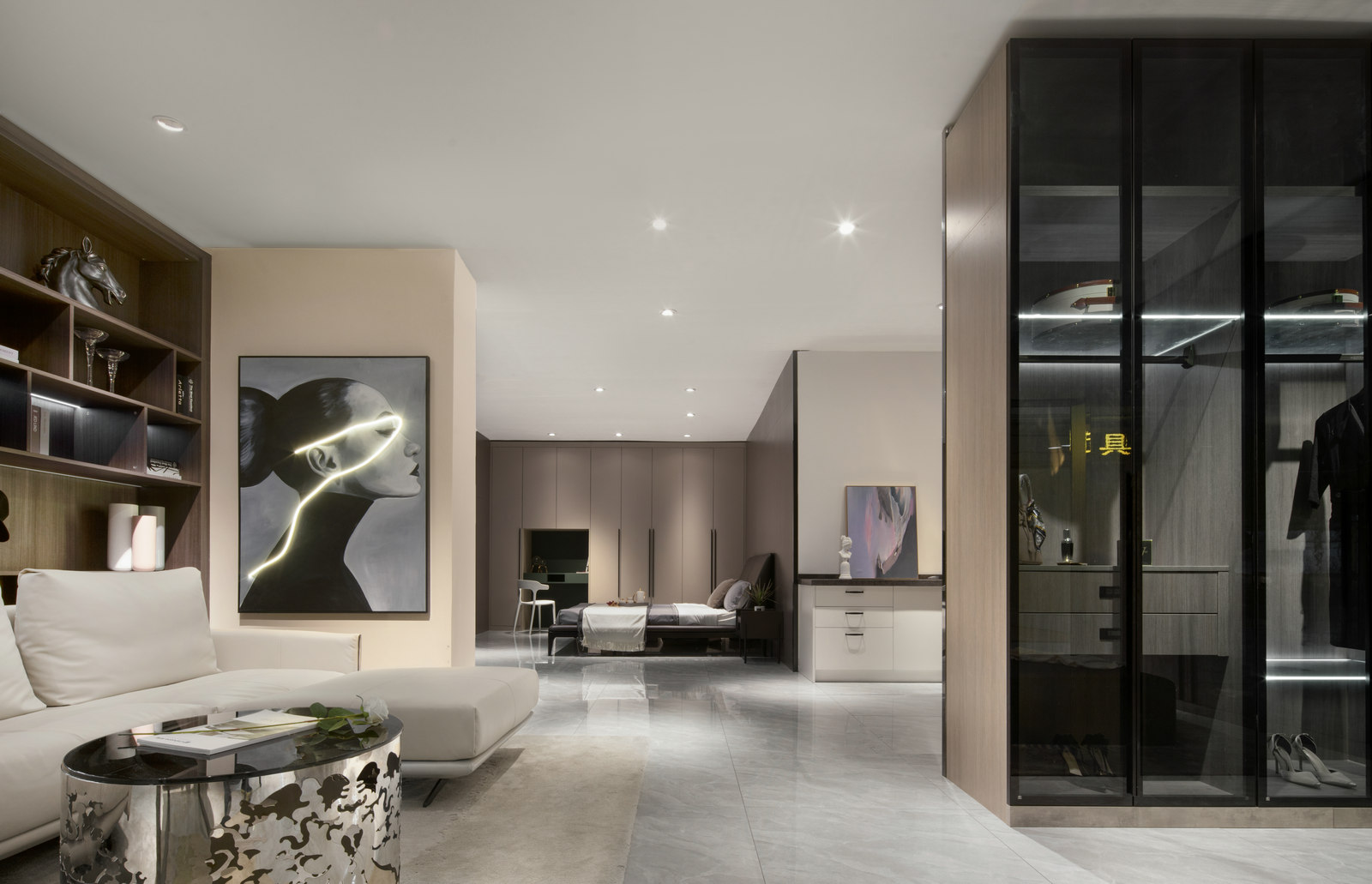 本案為HK.A全屋定制展廳,設(shè)計(jì)師以現(xiàn)代輕奢風(fēng)格呈現(xiàn),強(qiáng)調(diào)細(xì)節(jié),目光所及都是舒服時(shí)尚的氣息。輕奢代表一種優(yōu)雅、格調(diào)和對(duì)生活品質(zhì)的追求。用k木飾面、金屬線條等不同的材質(zhì)來(lái)賦予空間高級(jí)感。