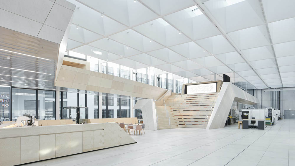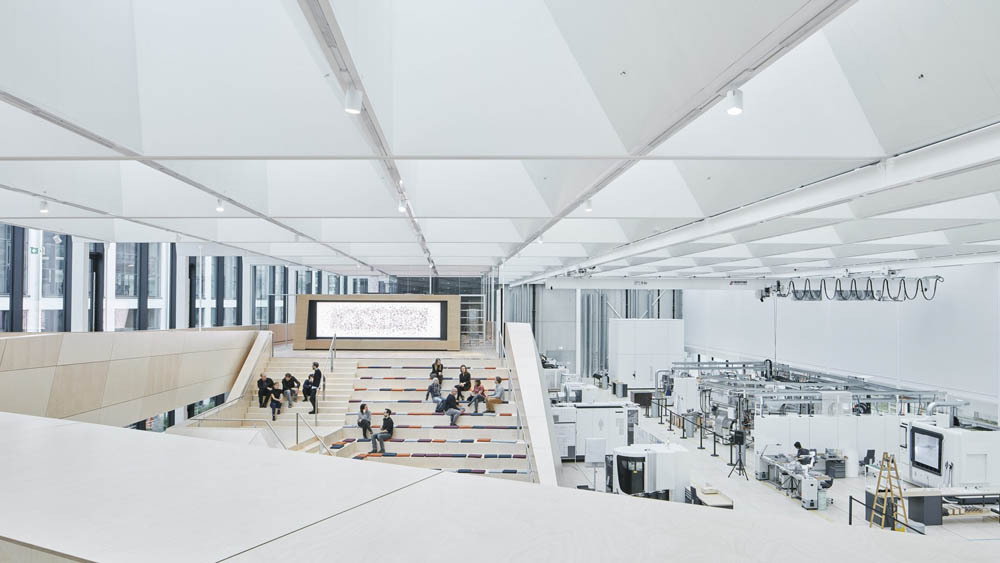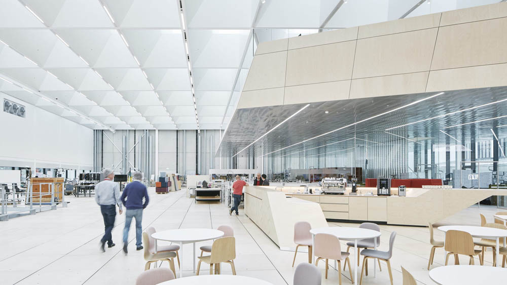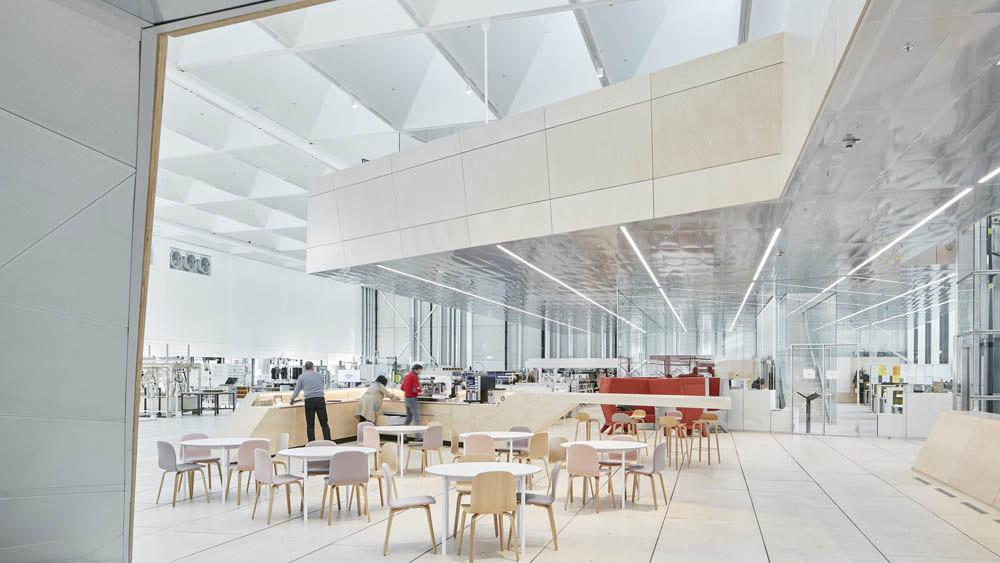 設(shè)計(jì)主要側(cè)重于創(chuàng)造一個(gè)鼓勵(lì)創(chuàng)造力的引人入勝和鼓舞人心的空間,而不是作為制造核心部分的物理生產(chǎn)過程。設(shè)計(jì)師的一個(gè)主要焦點(diǎn)是日光的整合,這使得水晶閃閃發(fā)光。