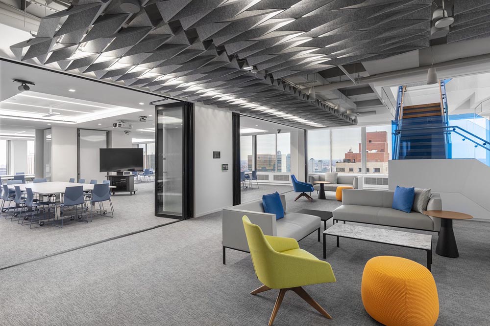 科技、前沿科技應(yīng)用、開放協(xié)作多元、品牌詮釋、簡約摩登、原木、藍(lán)色,設(shè)計(jì)團(tuán)隊(duì)將移動(dòng)應(yīng)用等前沿技術(shù)兼容進(jìn)各大型和小型的會(huì)議室中。同時(shí)主會(huì)議區(qū)域兼做工作區(qū)來使用,打造透明、技術(shù)和協(xié)作文化的空間。