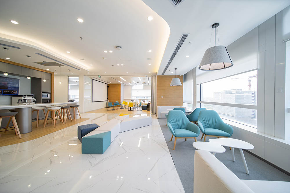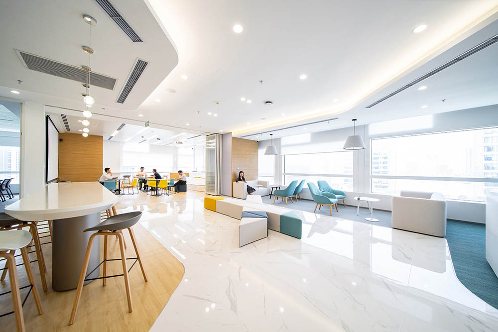 健康、高效、靈活、健康、聲學、隱私、私密+專注空間、升降工作臺,設計團隊在整個項目過程中與客戶團隊密切合作,將企業(yè)的特性元素與棱角分明的圖形和點綴以跳躍的企業(yè)色相結合,同時加入時尚科技感十足的家具從而創(chuàng)建了一個充滿企業(yè)個性氛圍的工作環(huán)境。