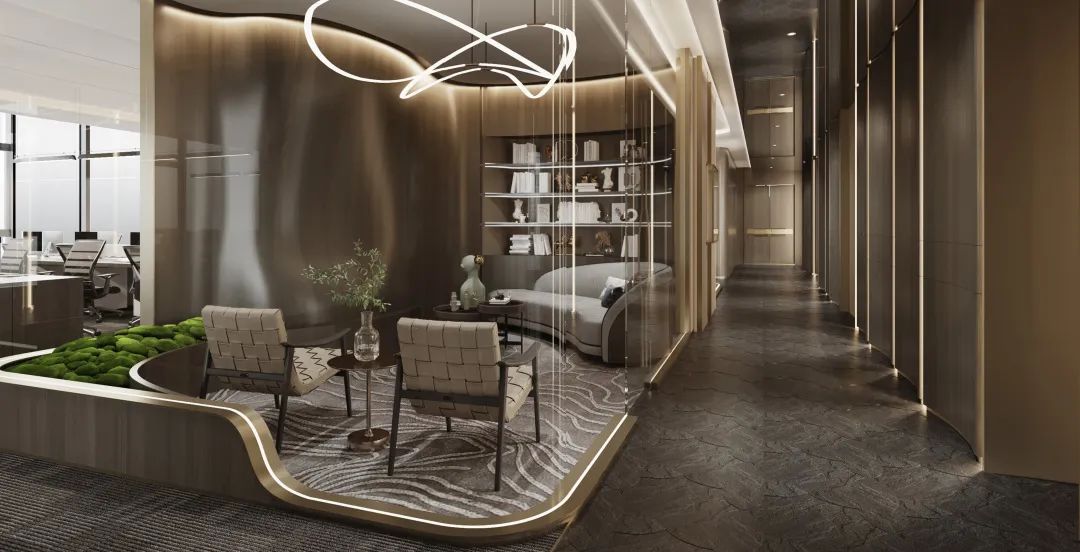 在本案在空間局限定義的表層,設(shè)計(jì)師希望能夠摒棄傳統(tǒng)的思維,大膽創(chuàng)新是尋求不一致最好的方式。打破了對(duì)金融企業(yè)傳統(tǒng)辦公空間的布置,在界定休閑與辦公空間的關(guān)系中模糊邊界,讓空間產(chǎn)生可并存的不同使用場(chǎng)景切換。其目的是為了讓空間給予物理上的通用,自由與使用者之間的舒適相結(jié)合。