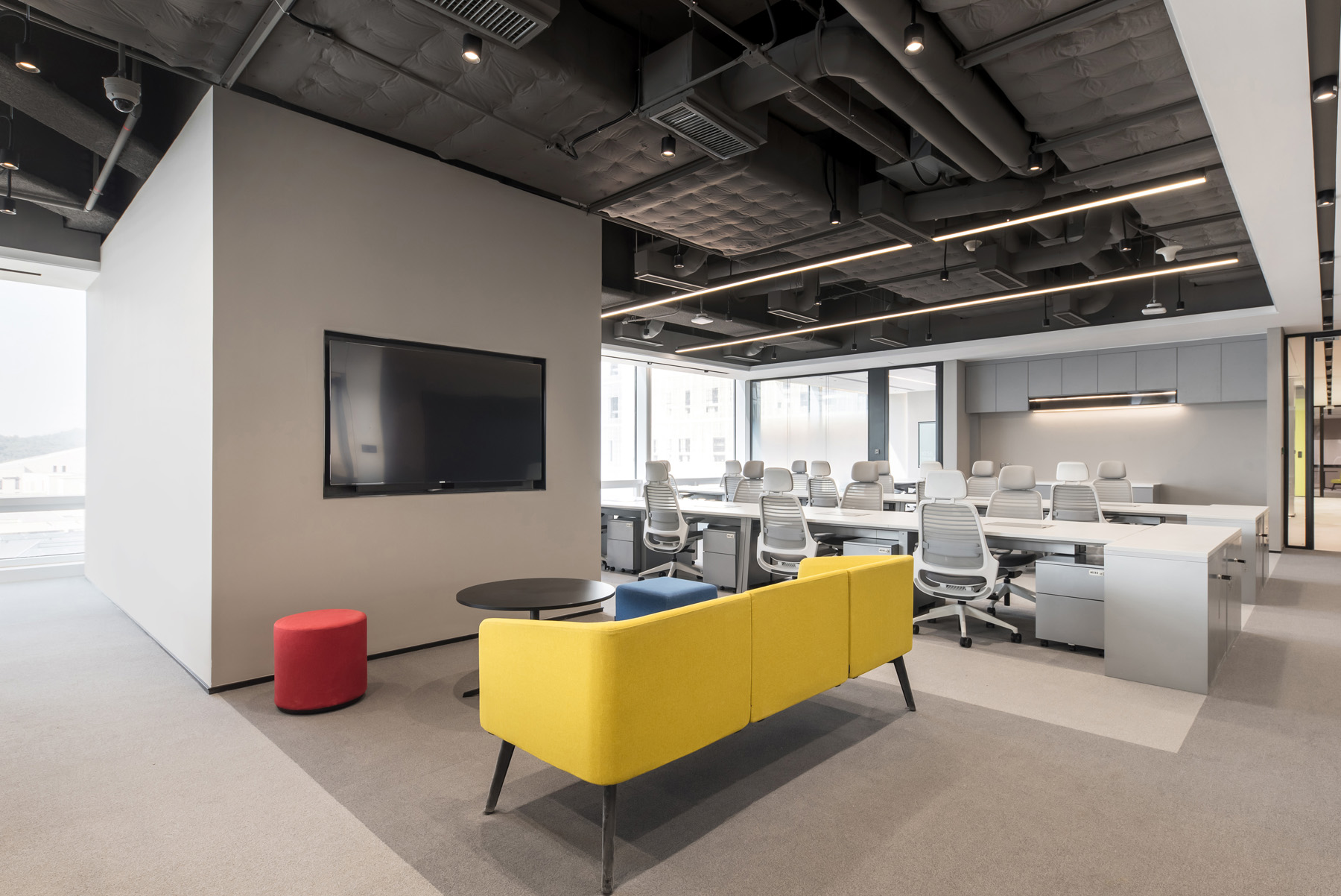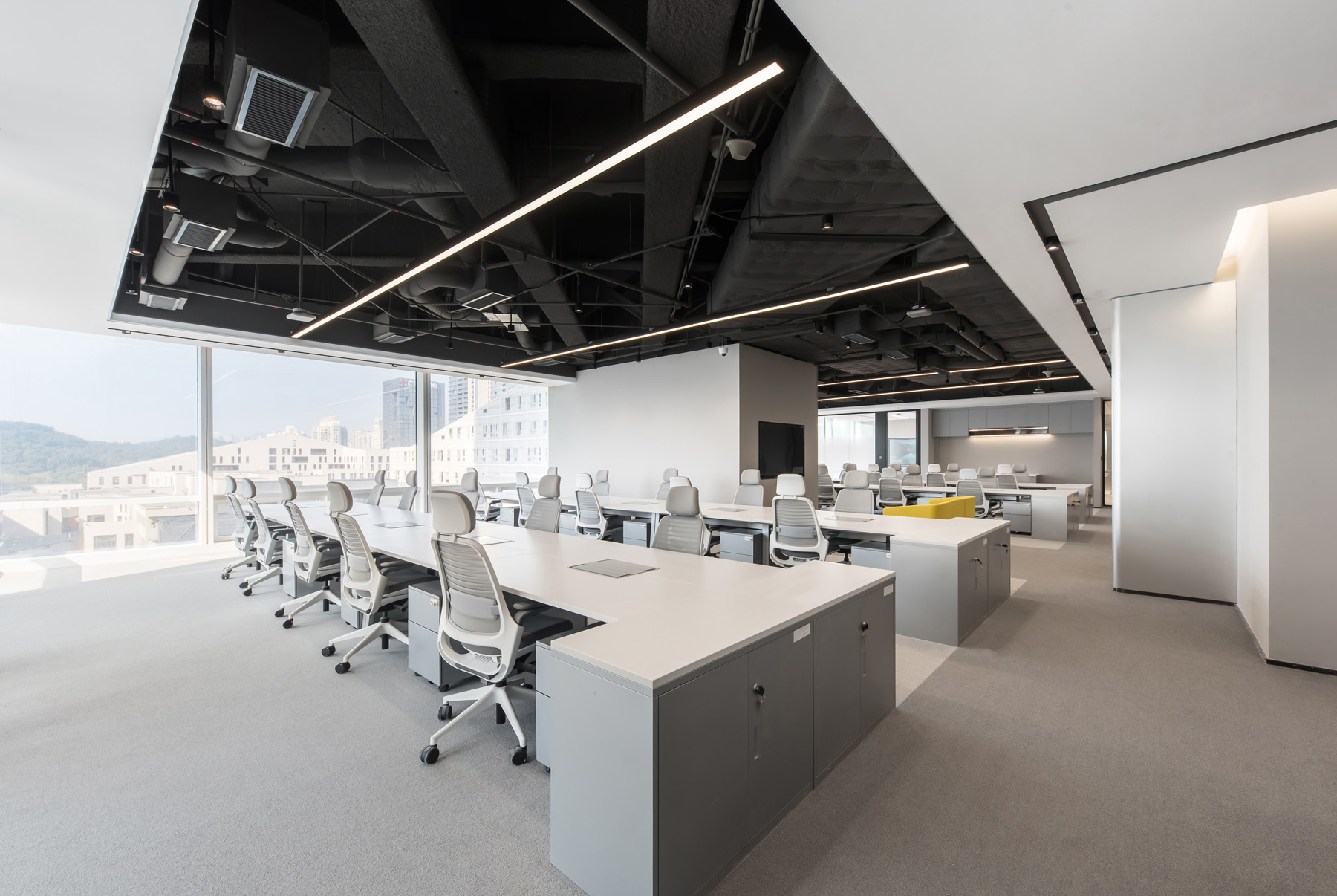 在本案設(shè)計(jì)室內(nèi)空間延伸原有建筑語(yǔ)言和空間肌理,整體以大面積的簡(jiǎn)約黑白灰色塊搭配恰到好處的線條造型,結(jié)合蒙德里安的三原色的藝術(shù)語(yǔ)言,打破了人們對(duì)于現(xiàn)代企業(yè)冰冷無(wú)趣的固有印象,通過(guò)設(shè)計(jì)的力量重新建立辦公空間應(yīng)有企業(yè)氣度與藝術(shù)的溫度。