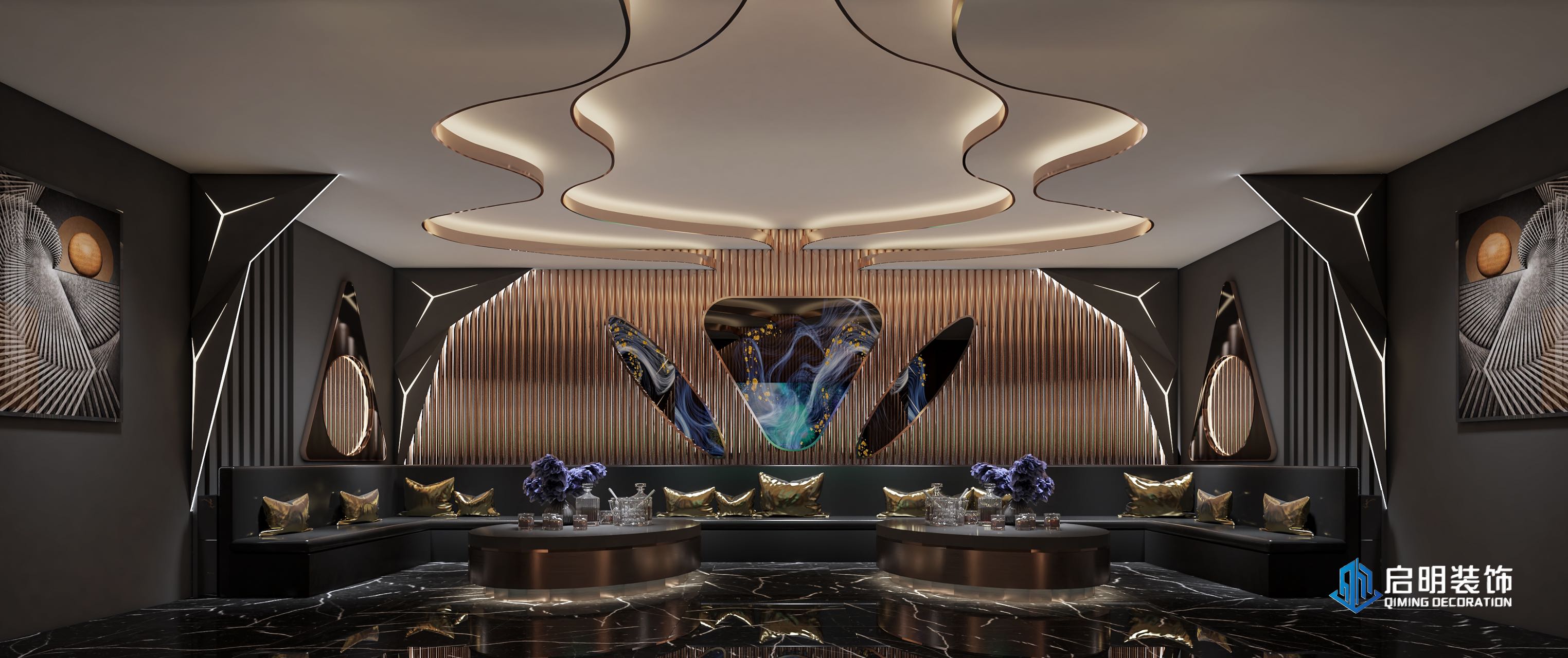 整體高端定位,私人會(huì)所作為尊貴的社交場(chǎng)所,應(yīng)具備高端、典雅的氛圍。在設(shè)計(jì)中,我們注重品質(zhì)、檔次和品味,以滿足高層次人群的需求。 注重藝術(shù)氛圍的營造,運(yùn)用藝術(shù)作品、裝飾品等元素,彰顯會(huì)所的文化底蘊(yùn)。此外,還通過空間布局、家具選用等方式,體現(xiàn)業(yè)主的審美觀。 設(shè)計(jì)KTV的過程中,關(guān)注每一個(gè)細(xì)節(jié),從墻面、地面、天花板到家具、燈具等,都精心設(shè)計(jì)。針對(duì)不同主題選用不同的高品質(zhì)的裝飾材料和家具,以提升會(huì)所的整體品質(zhì)。 KTV區(qū)域采用隔音材料,保證客戶在唱歌時(shí)的私密性。餐桌區(qū)域則注重餐飲體驗(yàn),選用高品質(zhì)的餐桌、椅子和餐具,給客戶營造出舒適、高雅的用餐環(huán)境。