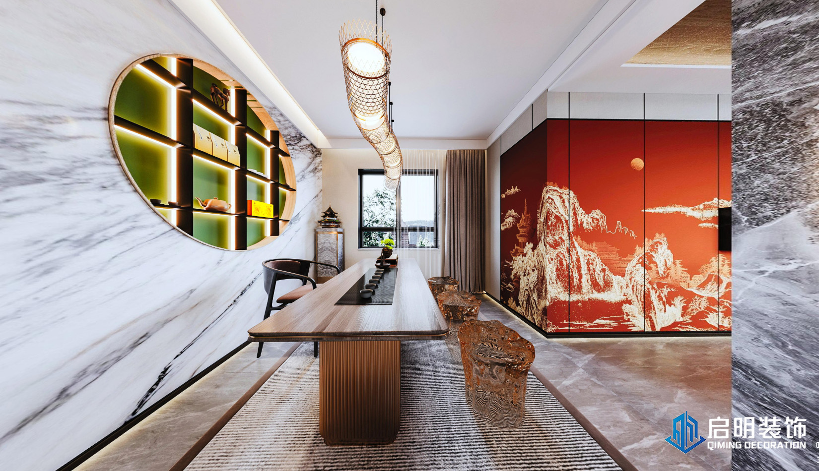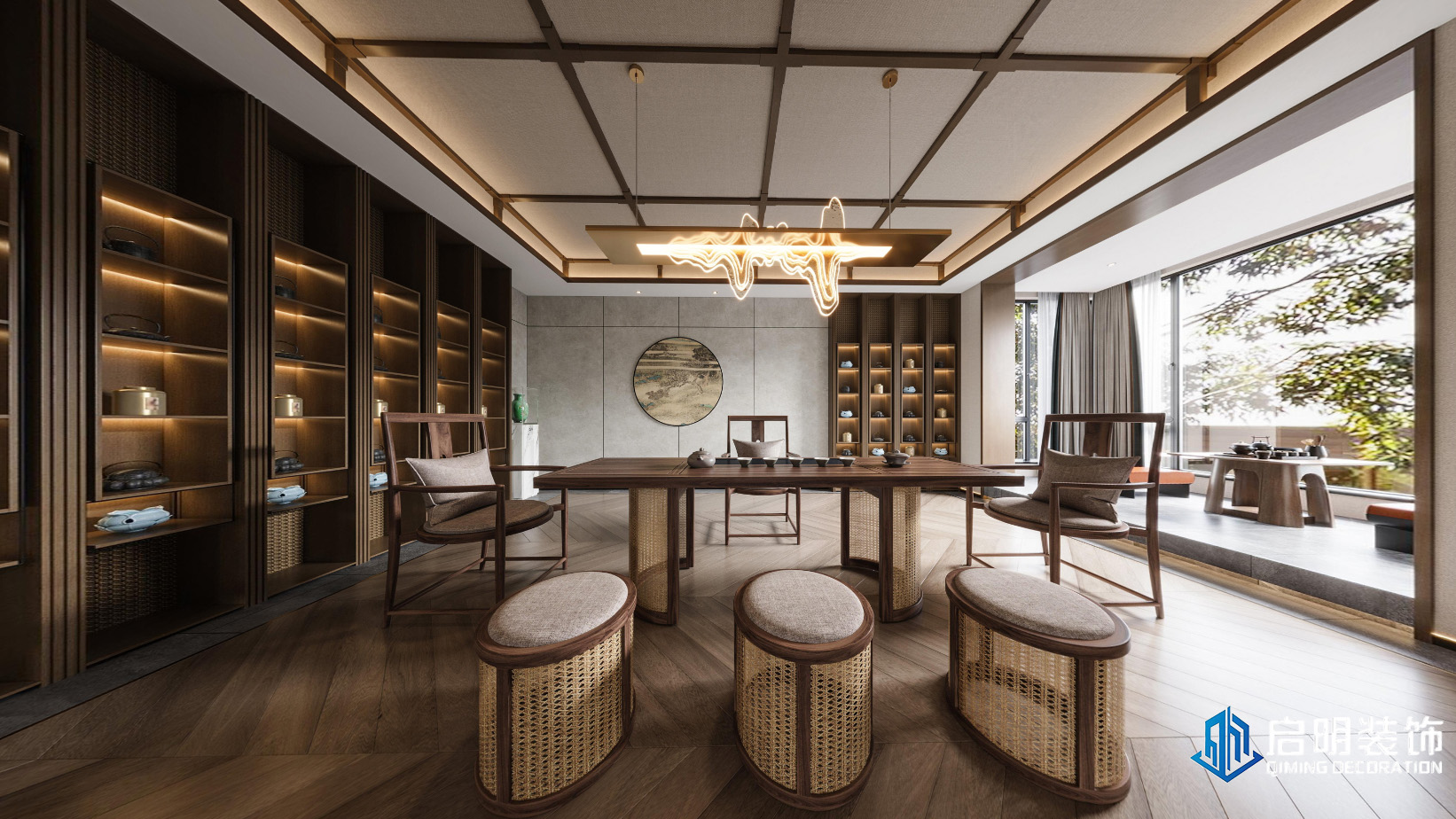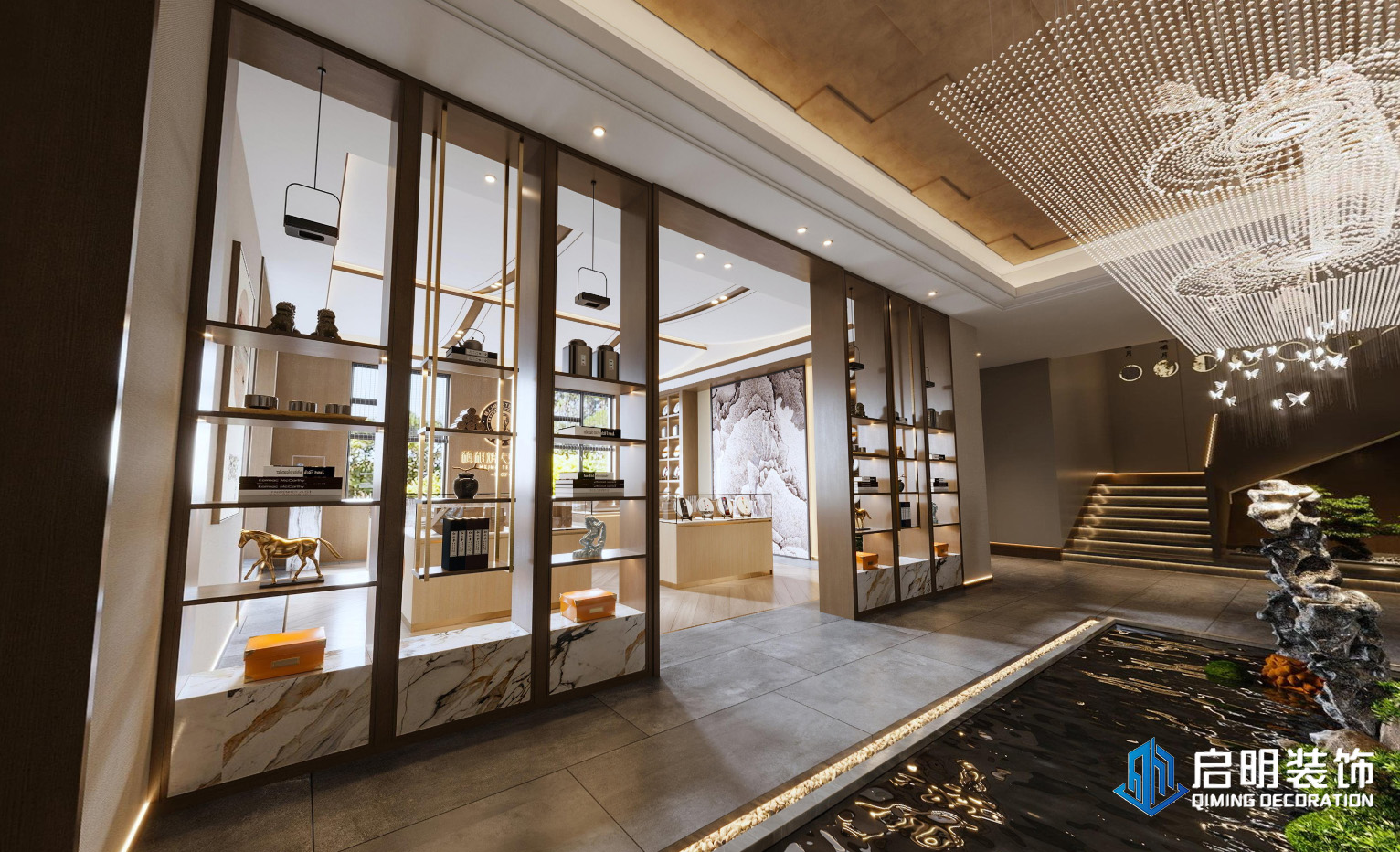 新中式會(huì)所的設(shè)計(jì)理念,是對(duì)傳統(tǒng)東方美學(xué)的一次現(xiàn)代詮釋,融合了豪華輕奢的風(fēng)格,旨在打造一個(gè)既典雅又時(shí)尚的休閑空間。 門(mén)廳的設(shè)計(jì)尤為匠心獨(dú)運(yùn),中心位置的水池和綠植成為了空間的靈魂。水池的流水聲與綠植的自然氣息,瞬間讓人忘卻城市的喧囂,進(jìn)入一個(gè)寧?kù)o的東方世界。 會(huì)所內(nèi)部,木色繼續(xù)扮演著主角,而細(xì)節(jié)處的金色線條和裝飾,則透露出輕奢的韻味。這種色彩與材質(zhì)的搭配,既體現(xiàn)了新中式的簡(jiǎn)潔大氣,又不失奢華感。每一處設(shè)計(jì)都經(jīng)過(guò)精心考量,從家具的選材到裝飾品的擺放,無(wú)不展現(xiàn)出對(duì)品質(zhì)生活的追求。