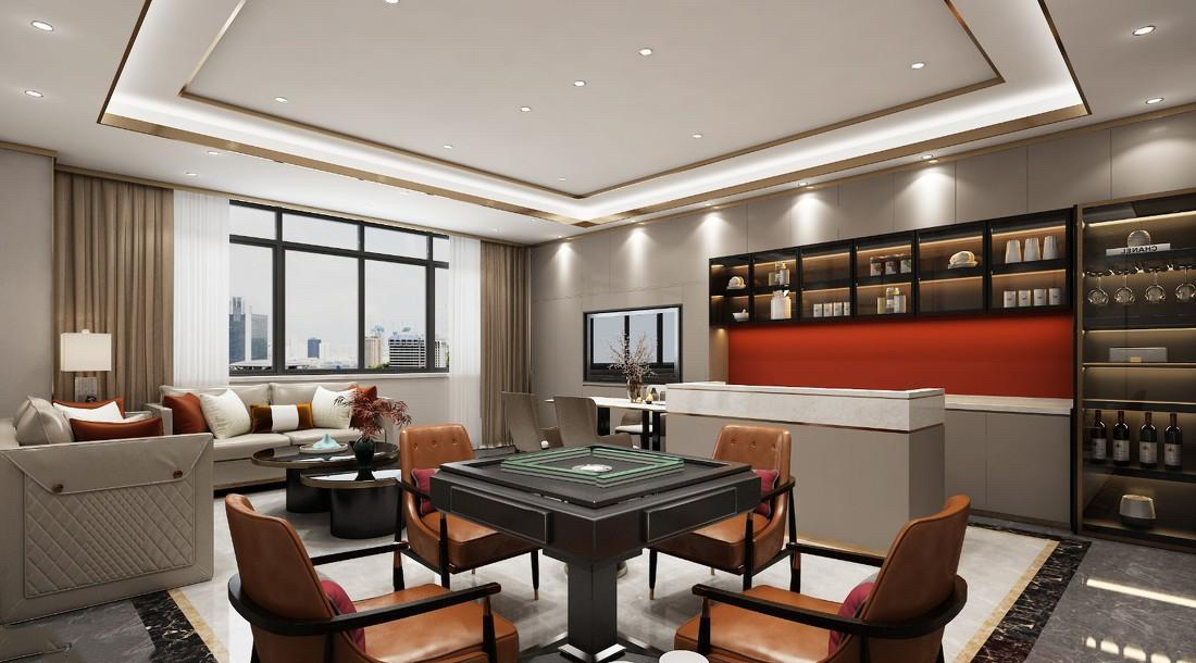 充分體現(xiàn)出中國傳統(tǒng)文化的韻味和特色,為玩家營造一個舒適、優(yōu)雅、安靜的環(huán)境,讓人們能夠在其中享受到棋牌游戲的樂趣。 在裝修風格上,中式風格棋牌館注重了傳統(tǒng)文化元素的運用,如中式家具、古典屏風、中國傳統(tǒng)畫作等,營造出古樸、典雅的氛圍。此外,還用傳統(tǒng)的中式色彩,如紅色、綠色、藍色等,讓整個空間顯得更加溫馨、舒適。