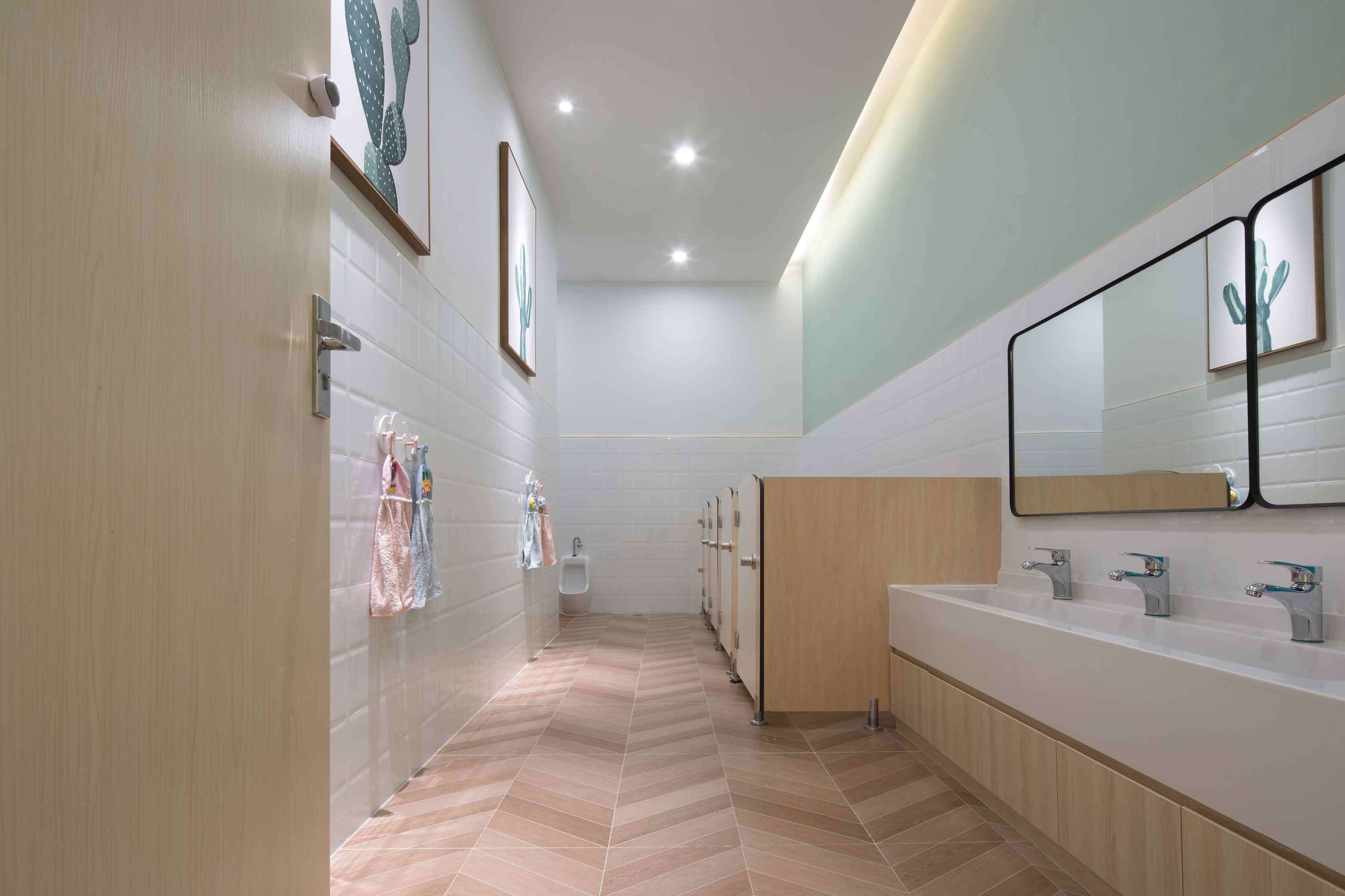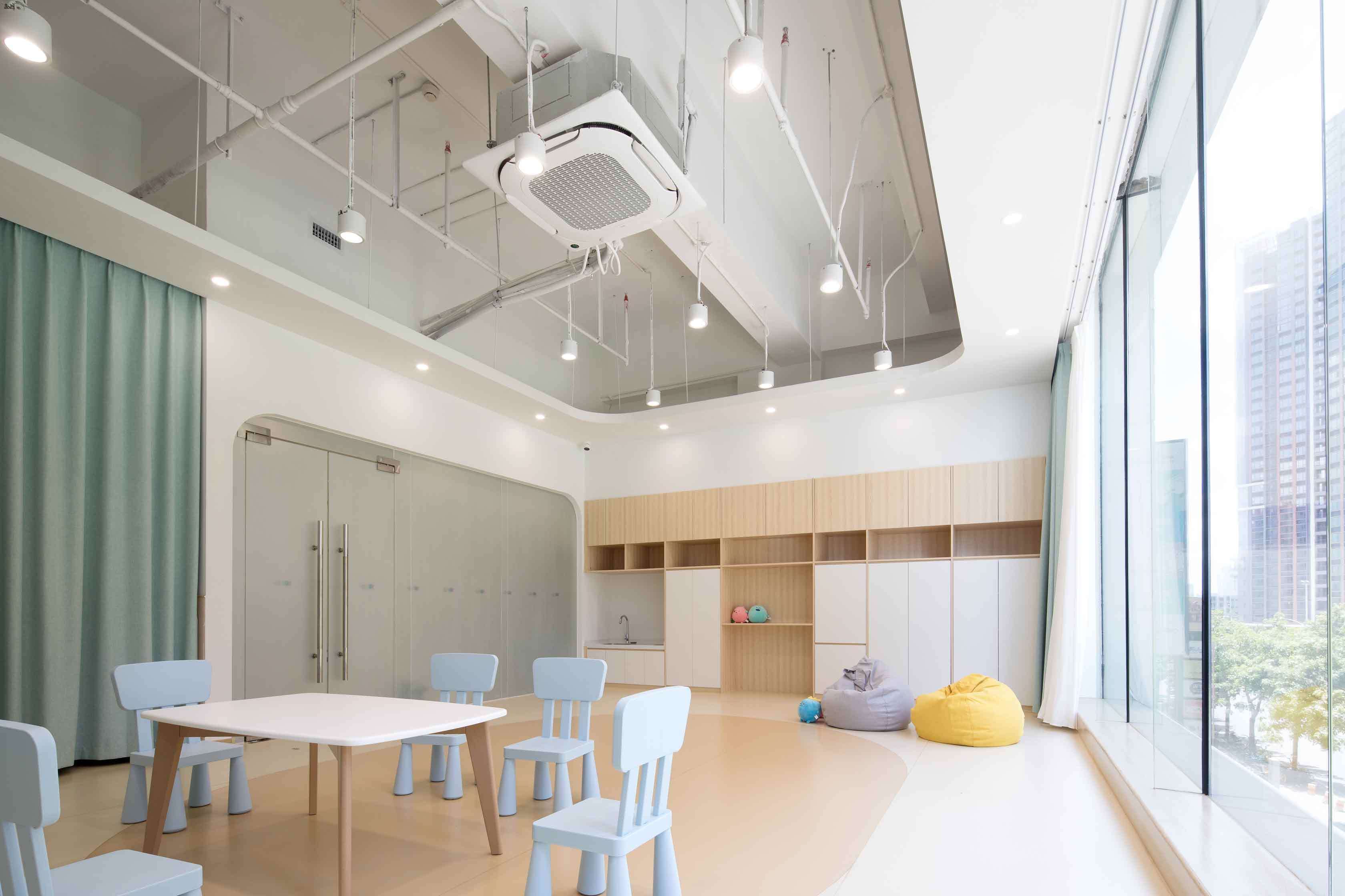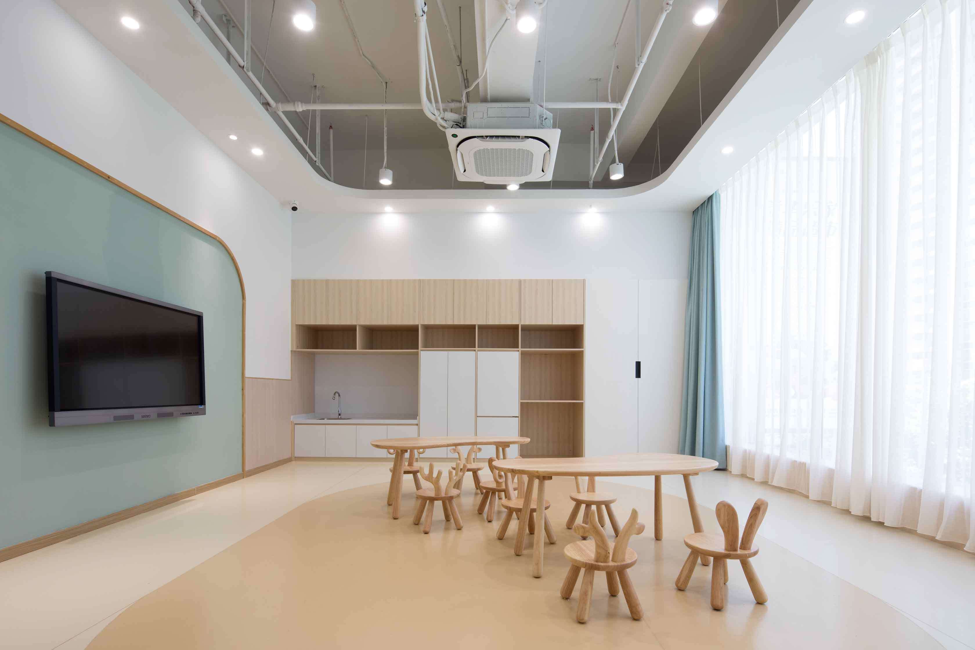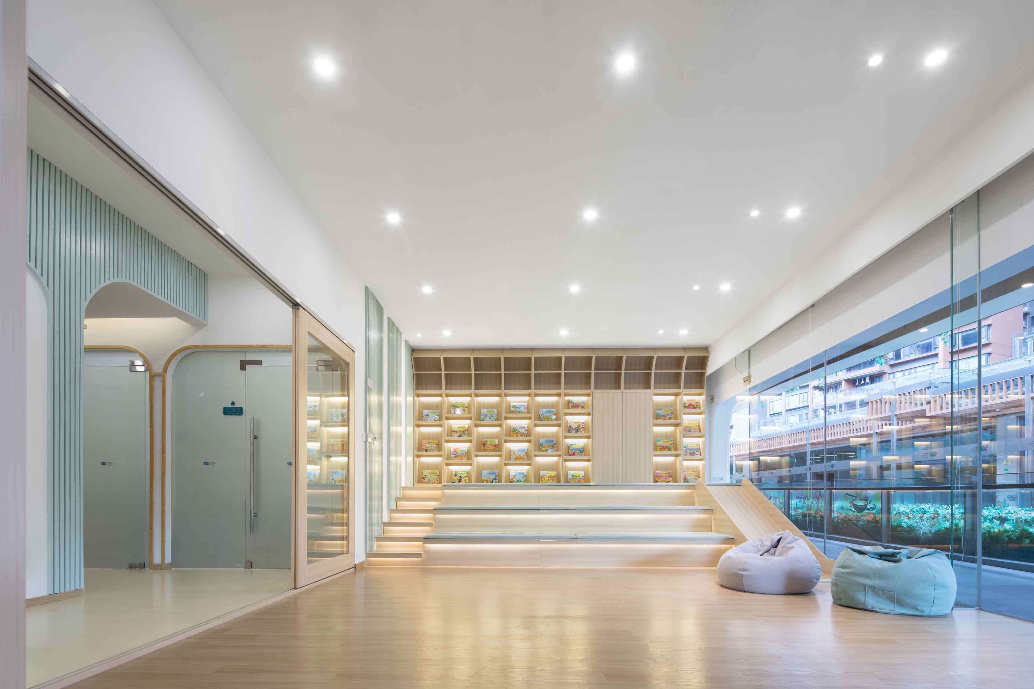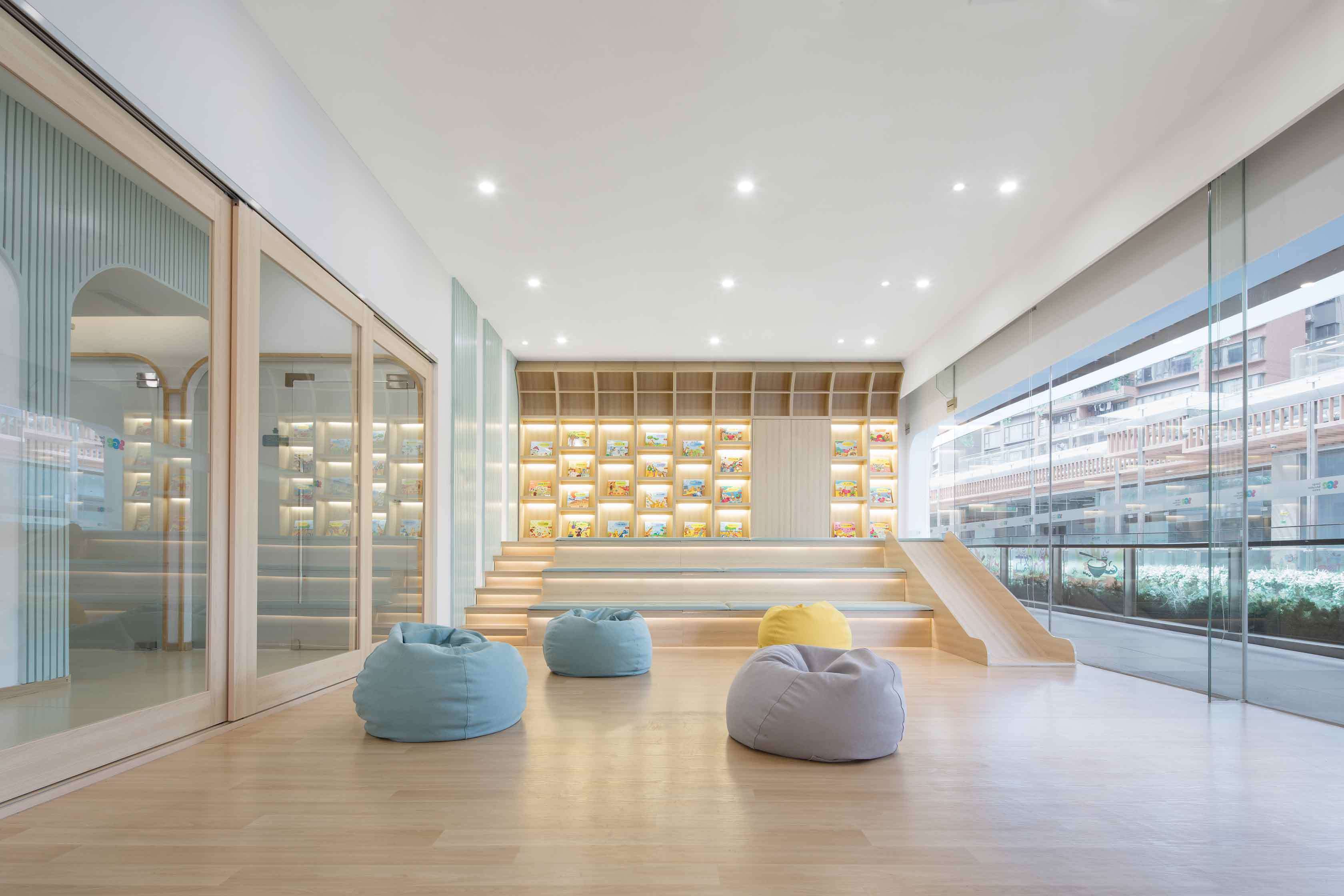 合理利用空間。希望通過對兒童天性、教學(xué)理念和空間特點(diǎn)的剖析,能夠在有限的空間里創(chuàng)造出不緊迫的尺度關(guān)系,破除“小型機(jī)構(gòu)孩子的活動和探索尺度不足”的一貫看法,同時打造充滿樂趣和寬松條件的空間感受。